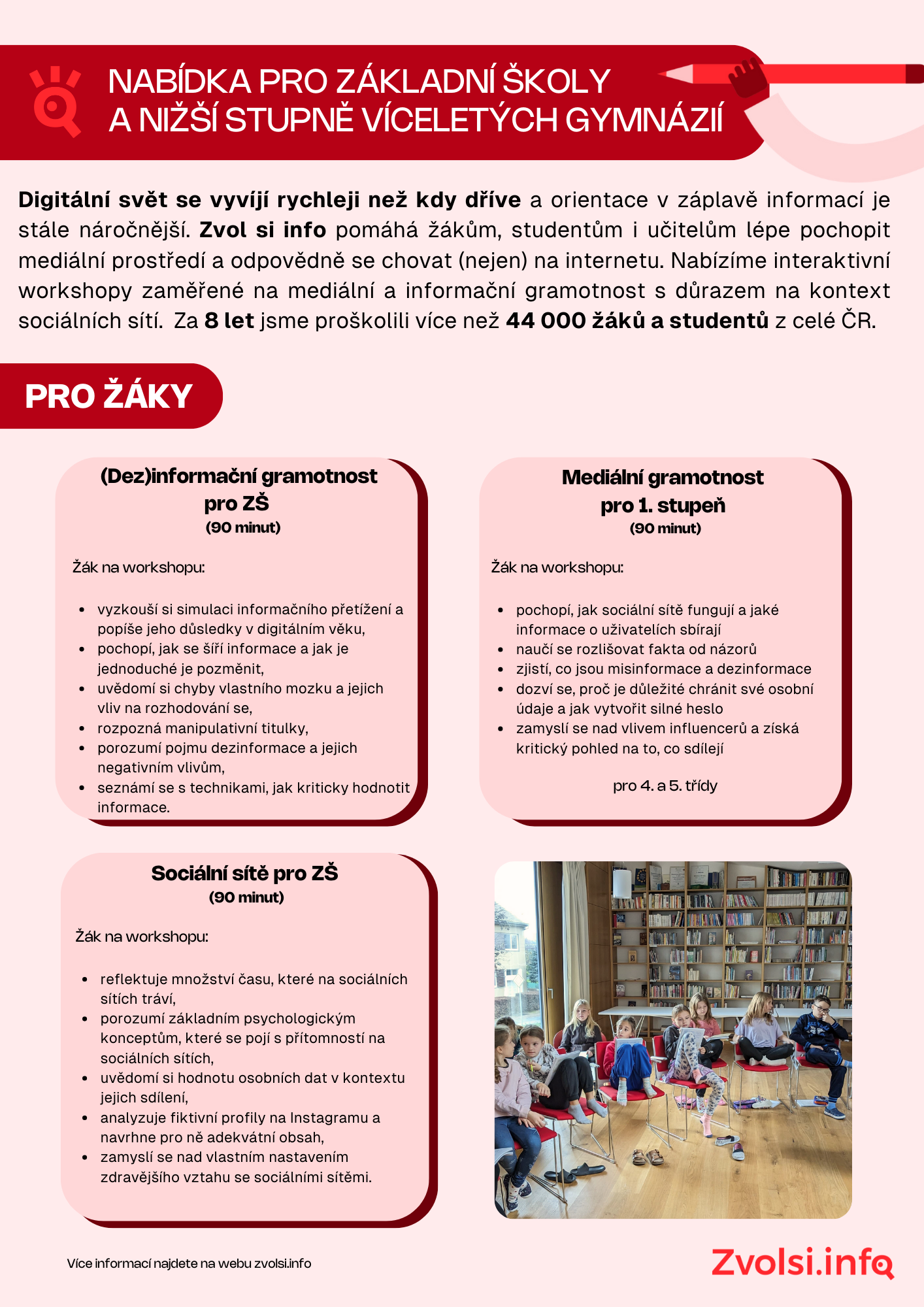 programy se nově rozšiřují o workshopy pro učitele a základní školy! Mediální